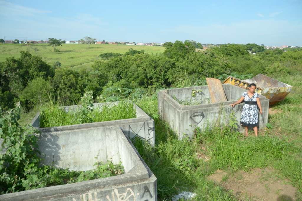 Seu temor tem explicação. Aparecida mora ao lado de uma área com enormes anéis de concreto abandonados na região há aproximadamente dez anos, quando foi prometida a canalização do rio que passa na região.