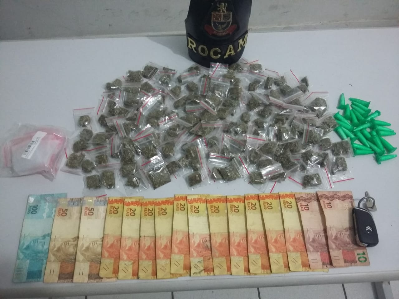 Outros materiais relacionados ao tráfico, como 179 saquinhos plásticos utilizados para embalar entorpecentes, também foram apreendidos, assim como R$ 440 que seriam oriundos do comércio ilegal e um automóvel Citroën C4.