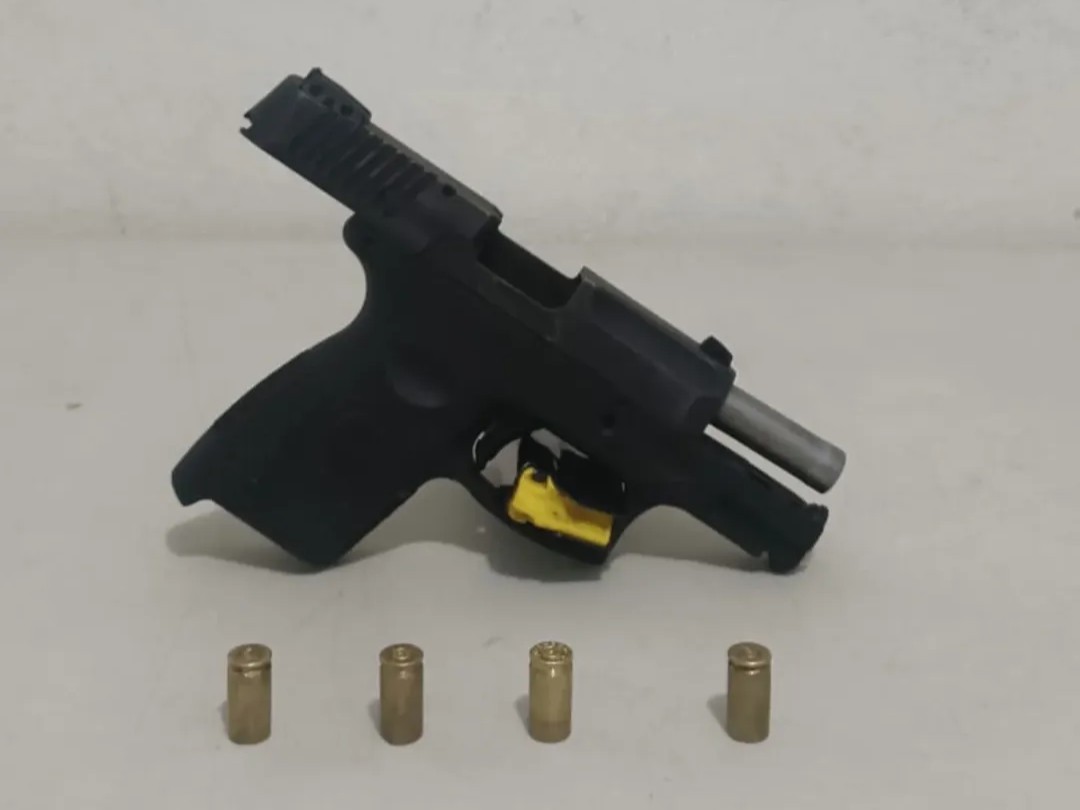 No ponto apontado, a equipe encontrou uma pistola Taurus calibre 9mm com numeração raspada. O armamento estava, conforme a polícia, em bom estado de conservação. Também foram localizados outros três estojos deflagrados, totalizando quatro cápsulas.