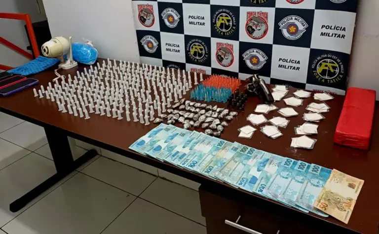 O suspeito, que não teve a identidade divulgada, foi encaminhado à Polícia Civil e permanece à disposição da Justiça. As drogas, a arma e os demais objetos foram apreendidos.