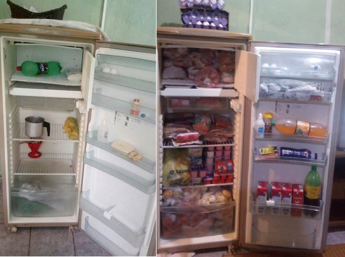 Antes e depois com a geladeira do casal; matéria do MN comoveu marilienses (Foto: Divulgação/Arquivo Pessoal)