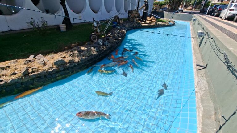 Após reforma, carpas retornam ao espelho d’água do Paço Municipal em Tupã