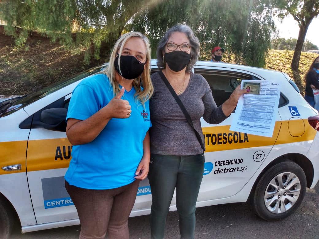 Aluna habilitada, em meio à pandemia, comemora conquista ao lado da instrutora (Foto: Divulgação)