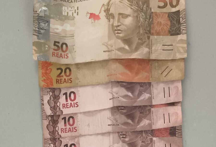 Durante a busca pessoal, os PMs localizaram R$ 147 em cédulas diversas, que seriam parte dos R$ 200 levados da vítima. O autor foi conduzido à Delegacia de Polícia local, onde o flagrante foi formalizado. Ele aguarda audiência de custódia.