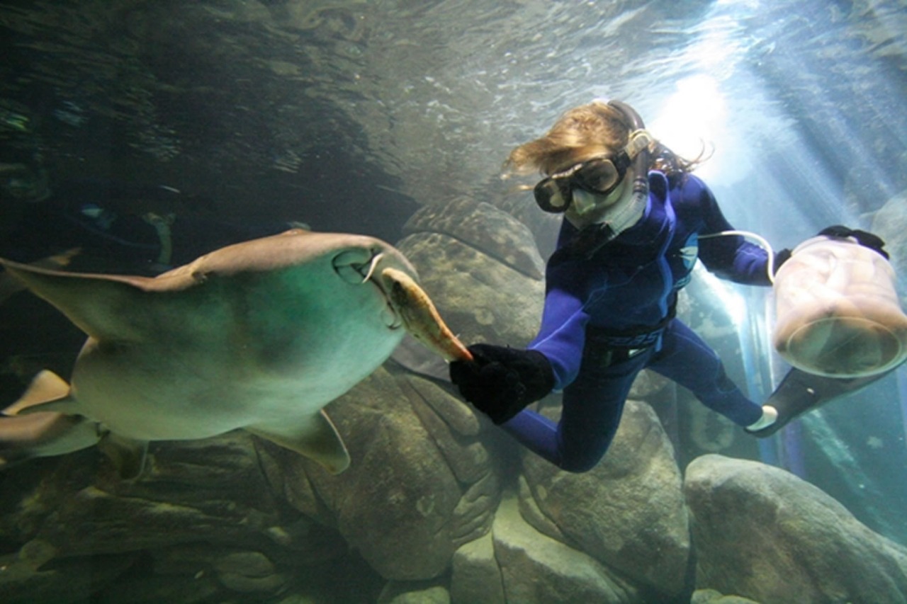 Vilões de obras que vão de A Pequena Sereia ao clássico de 1975 dirigido por Steven Spielberg, tubarões têm sido vítimas de caça desordenada no último século. Segundo estimativa da World Wide Fund for Nature (WWF), 114 das 500 espécies documentadas já estão sob algum nível de ameaça de extinção. Mas, por incrível que pareça, os tubarões são os animais mais calmos do tanque. Quando a reportagem participou da experiência, quase tocou em um filhote de tubarão-lixa que ali descansava.