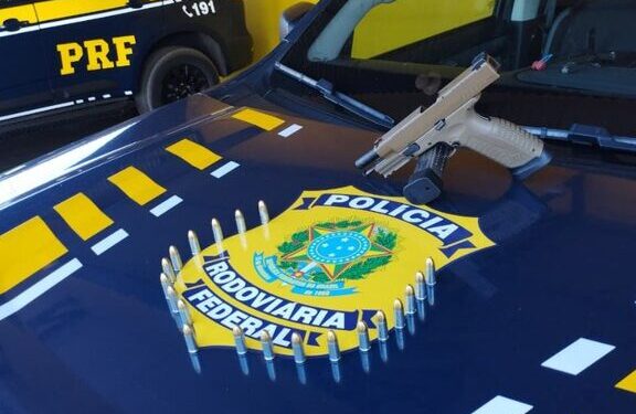 Na vistoria, os policiais localizaram uma bolsa preta escondida sob o banco do passageiro, que continha uma pistola calibre 9 mm municiada com 20 cartuchos. Um dos ocupantes assumiu a posse da arma.