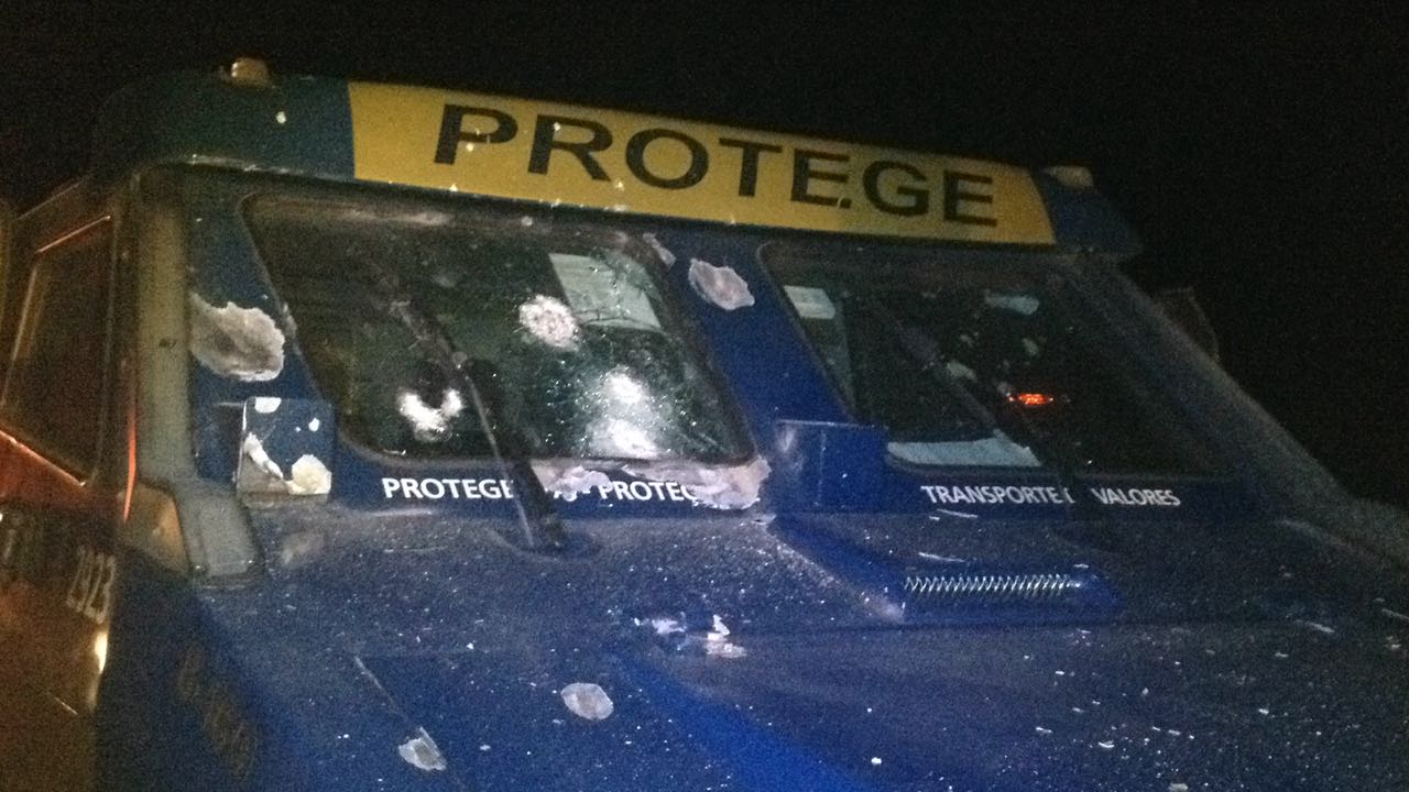 De acordo com a Polícia Rodoviária, os criminosos estavam em uma Land Rover Freelander e um caminhão também pode ter participado da ação. O número de criminosos não foi confirmado, mas estavam “todos fortemente armados”.