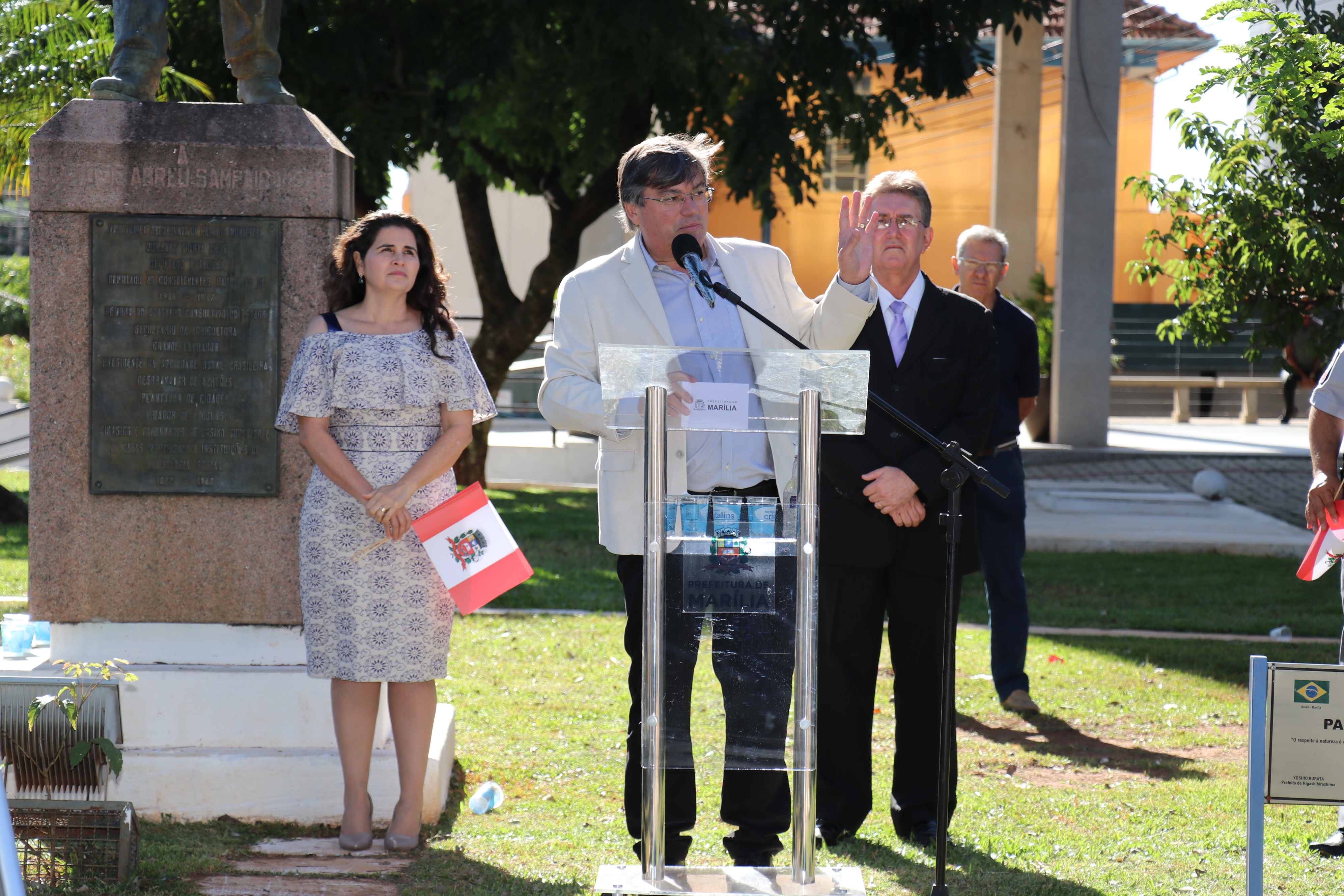 Ao final com as bandeiras do pavilhão nacional hasteadas, o Pastor Francisco Mecenas representando a PIB (Primeira Igreja Batista), fez uma oração para Marília. A solenidade ocorreu no Paço Municipal.