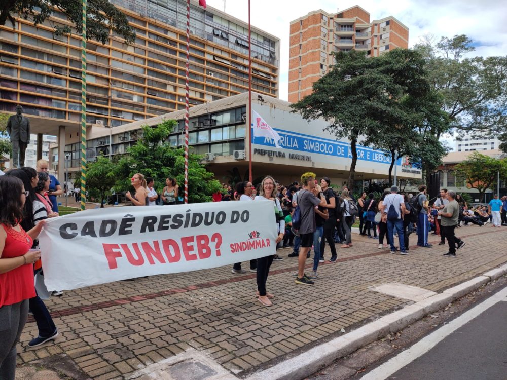 Concentração de servidores em frente à Prefeitura de Marília (Foto: Sindimmar/Divulgação)
