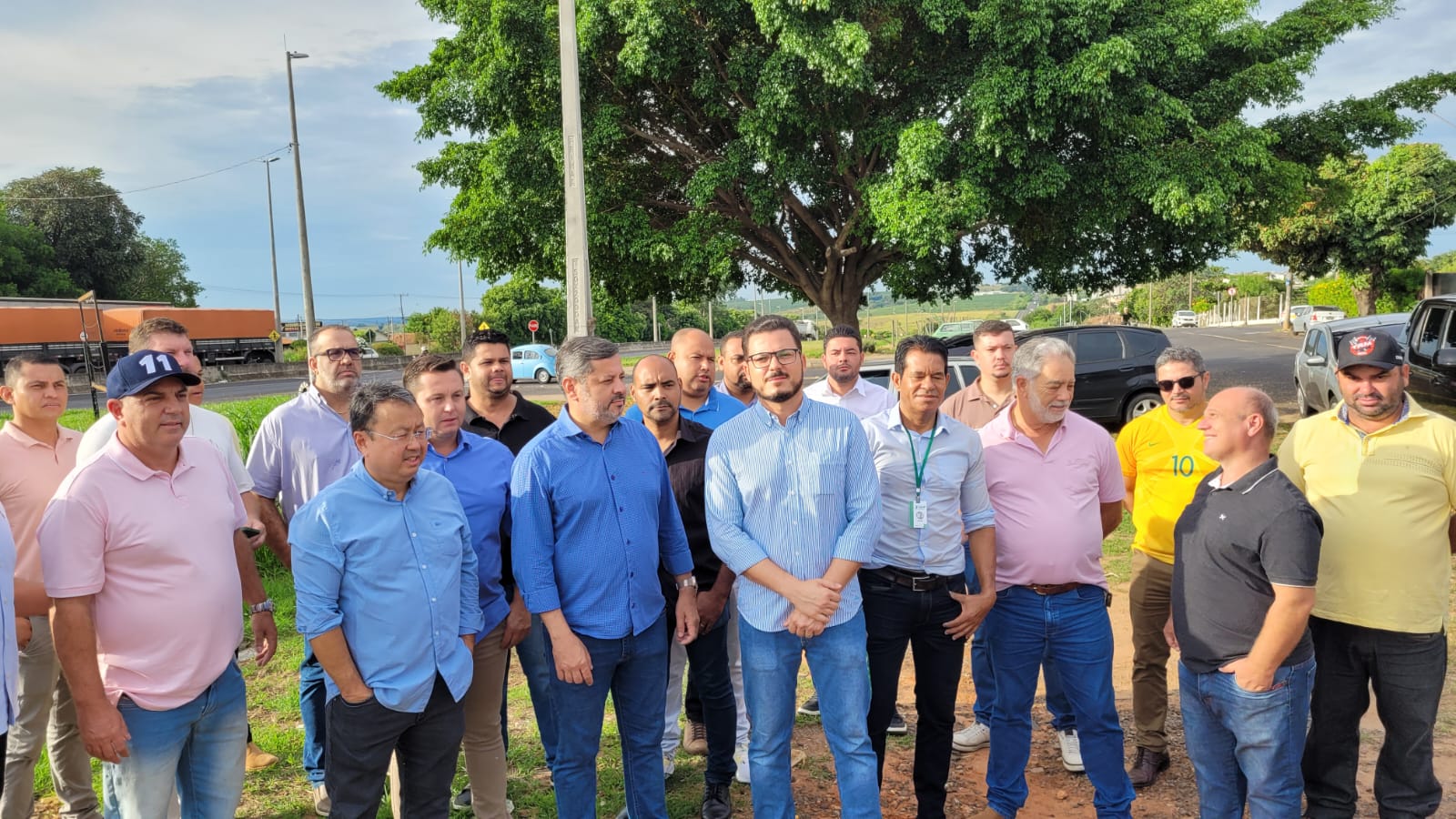 Prefeitos de cidades vizinhas a Marília se reuniram na manhã desta quinta-feira (3), ao lado da rodovia Transbrasiliana (BR-153), na zona sul da cidade, em ato político promovido pelo vice-prefeito Rogerinho (PP).