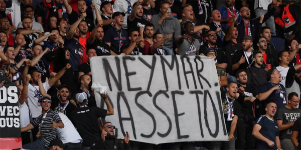 No domingo, na primeira rodada do Campeonato Francês, o PSG enfrentou o modesto Nîmes – Neymar não foi nem relacionado pelo técnico Thomas Tuchel. Um novo elemento entrou na operação, com fãs parisienses pedindo a saída do craque brasileiro, expressando sua raiva com cartazes explícitos, até insultuosos, no estádio Parque dos Príncipes: “Vá embora!”, “Neymar, filho da p…”