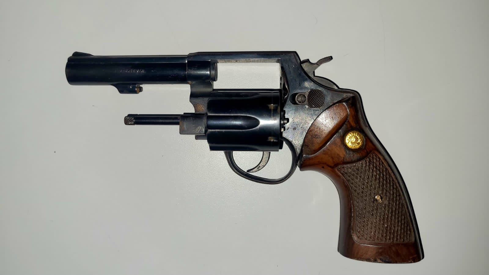 Em busca mais detalhada, um revólver calibre .38 — sem numeração aparente — foi localizado sobre o telhado da casa. A arma também apresentava indícios de uso recente e foi apreendida.