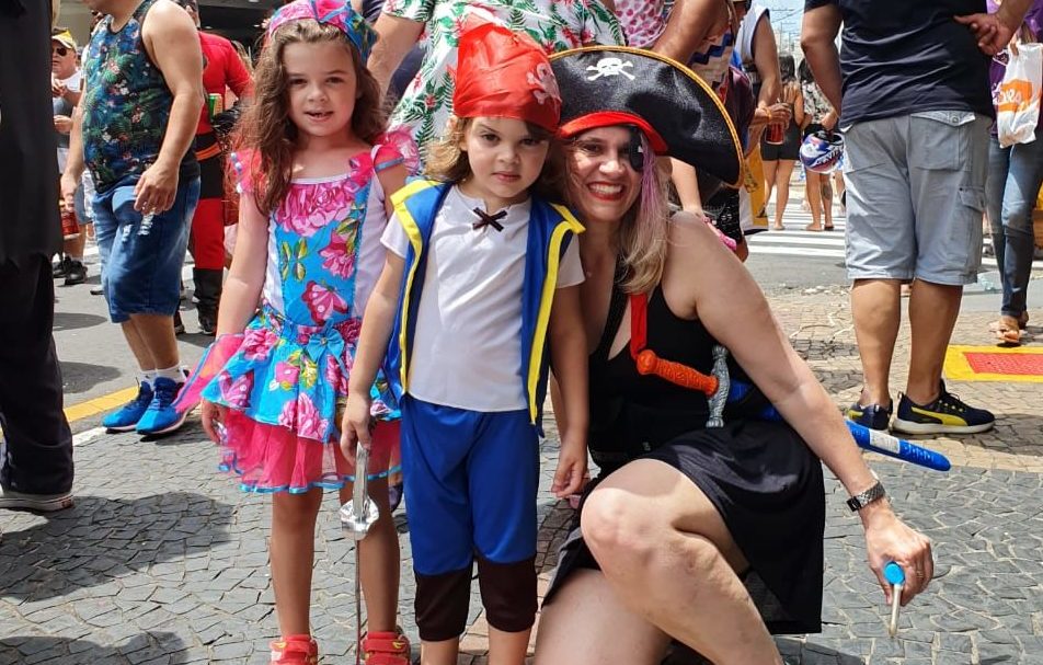 A médica Carla Lopes, de 36 anos, foi para a “avenida” com os filhos: Giovana, que tem seis anos, e Luiz Fernando, quatro anos. “Eles vêm desde que nasceram. Com certeza é uma festa familiar, onde tem diversão para todas as idades”, destaca a foliã.