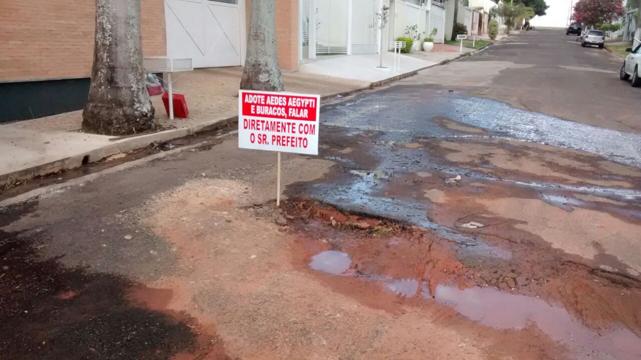 “Sou nascido e criado em Marília. Nunca vi em meus 74 anos a cidade tão abandonada, com tanto buraco, mato alto e água parada por onde você anda. O prefeito morou até pouco tempo atrás aqui no bairro e agora esqueceu que nós existimos. Isso está uma vergonha, parece o mapa do inferno em alto-relevo”, desabafou o mariliense, que protestou com uma placa, fincada dentro de um buraco.