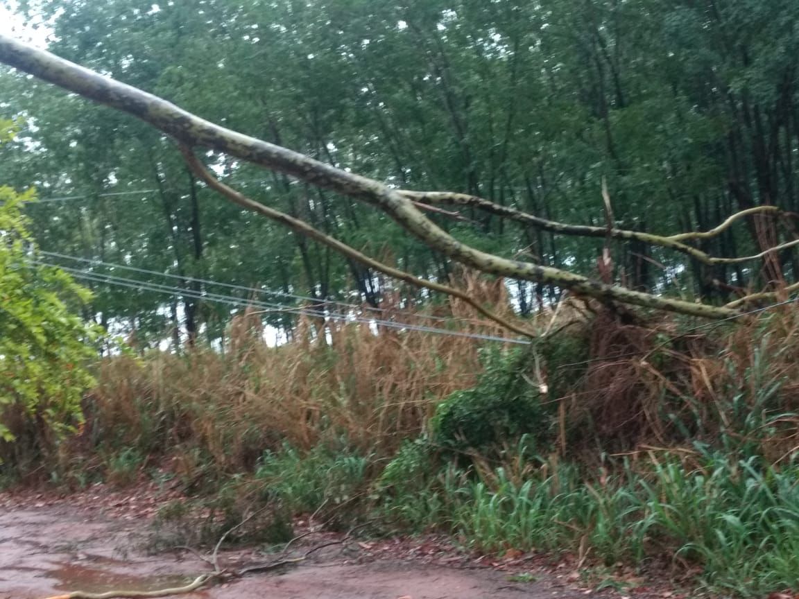Diversas árvores também acabaram caindo pelas estradas de terra e atrapalharam a locomoção de quem mora por ali.