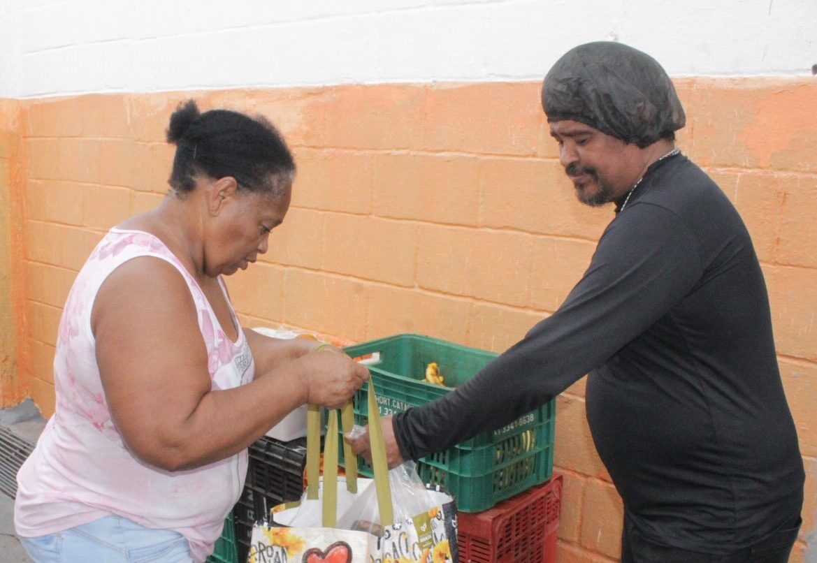 O banco monta uma ‘feirinha’ com alimentos que podem complementar a mesa das famílias. No dia em que dona Maria Aparecida esteve com a neta Maria Helena, na feirinha estavam sendo distribuídos manga, pepino, cenoura, abobrinha, maçã e banana – a fruta preferida da netinha. “Vou fazer uma torta de banana que todo mundo vai amar”, revelou.