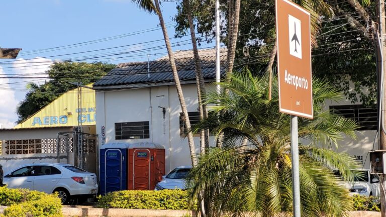 Banheiros químicos ao ar livre revoltam usuários do aeroporto de Marília