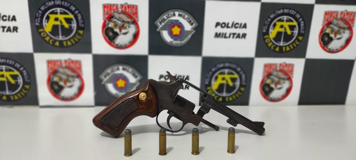 Foi feita a abordagem e os militares encontraram um revólver calibre 32 com numeração raspada e quatro munições íntegras.