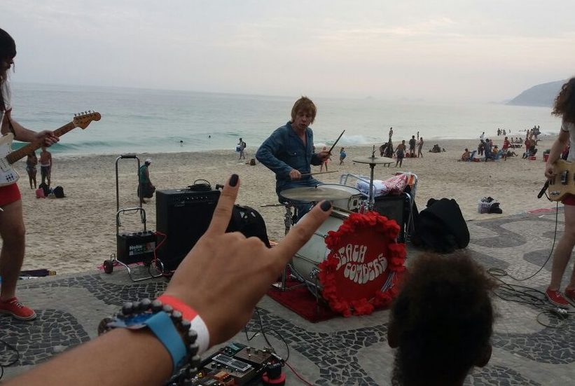 Um dia após fazer show no Rock in Rio, o baterista da banda britânica The Who, Zack Starkey, aproveitou para passear pelo calçadão da praia de Ipanema no último domingo, 24, e acabou tocando bateria com uma banda que se apresentava no local.