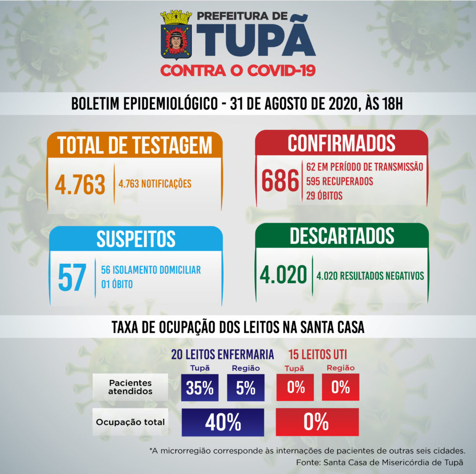 A Prefeitura de Tupã (distante 75 quilômetros de Marília) confirmou nesta segunda-feira a 29ª morte pelo coronavírus. A vítima é um homem de 62 anos.