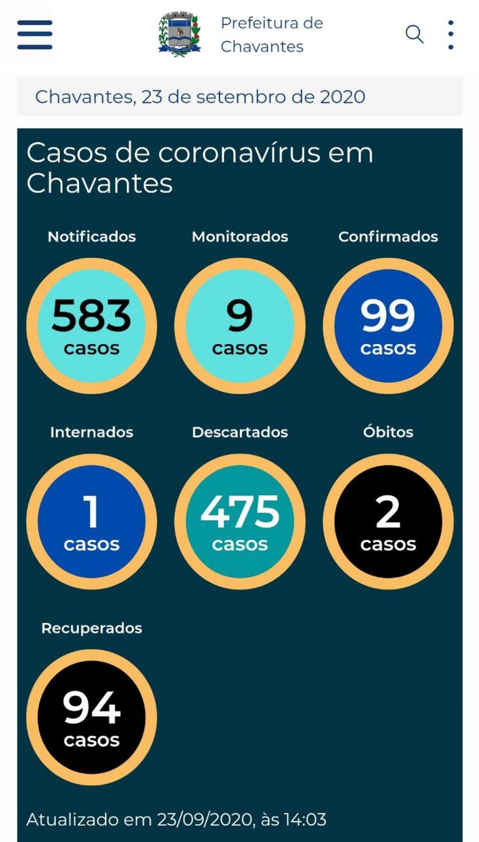 Chavantes registra 99 casos confirmados da doença, dos quais 94 já se curaram e dois morreram. Há nove casos considerados suspeitos.