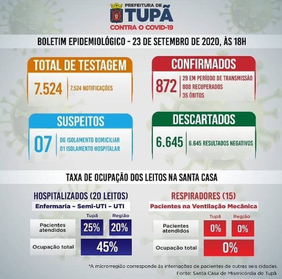 A Prefeitura de Tupã (distante 75 quilômetros de Marília) confirmou nesta quarta-feira a 35ª morte pela Covid-19.