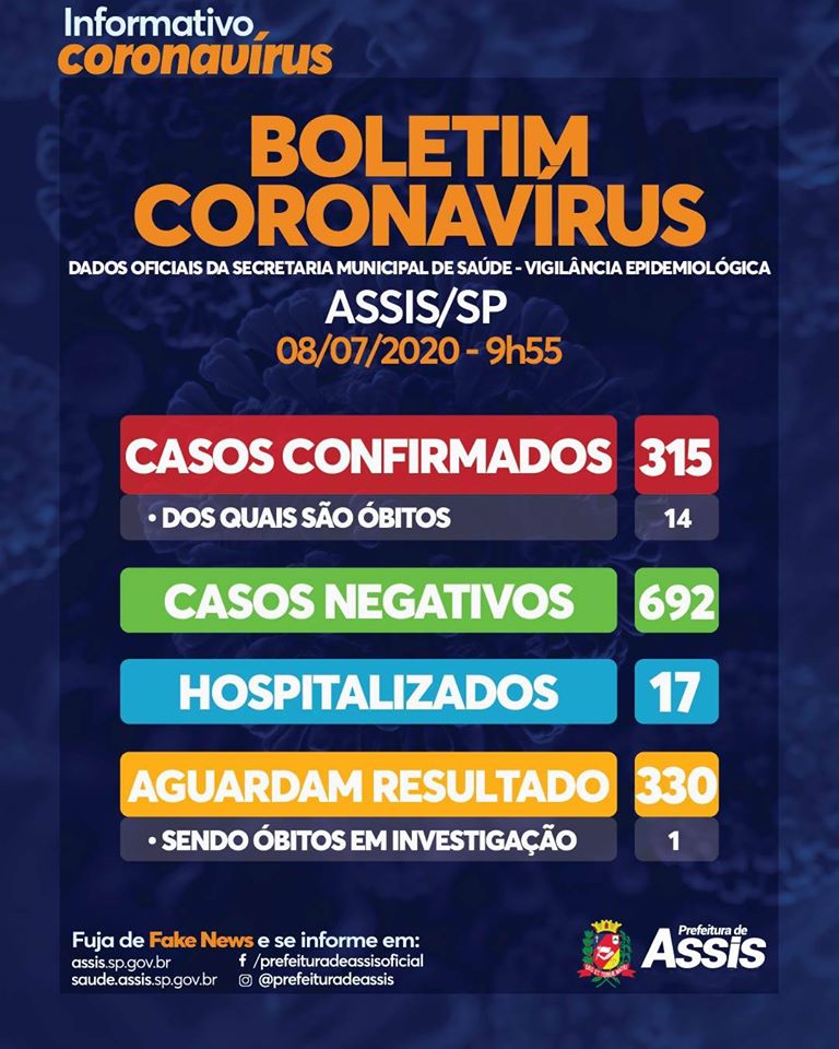 A Prefeitura de Assis (distante 75 quilômetros de Marília) confirmou nesta quarta-feira a 14ª morte pelo novo coronavírus.