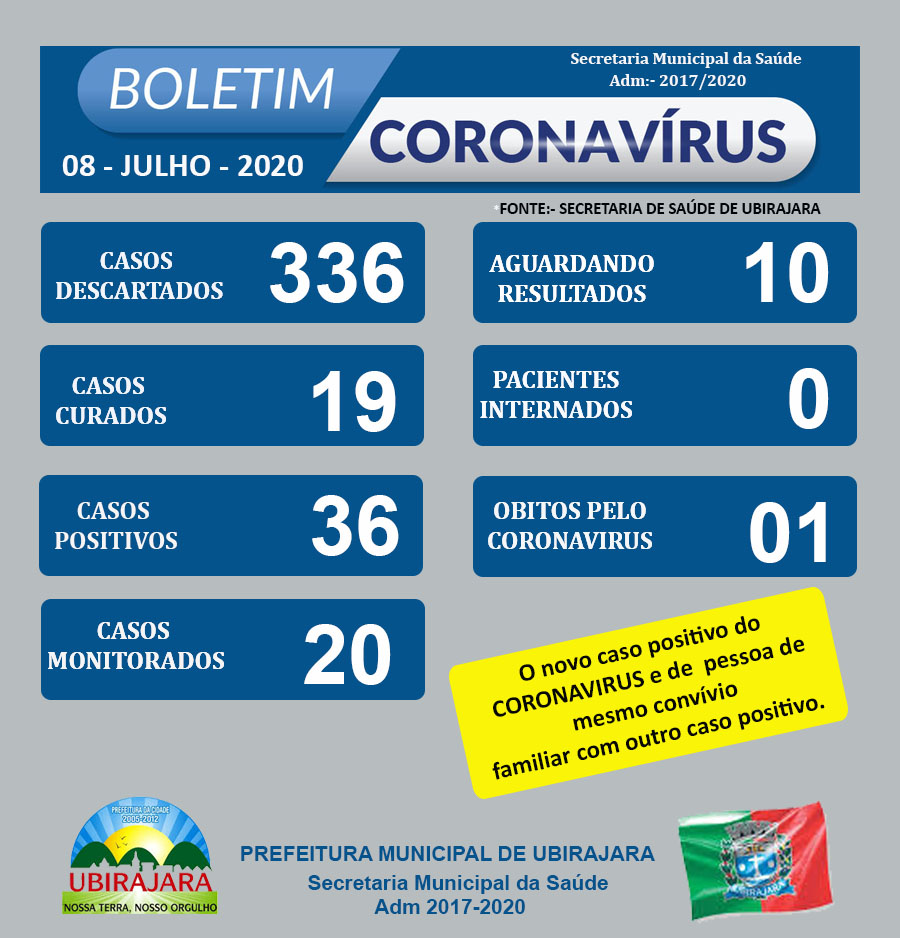 A cidade tem 36 casos positivos, sendo um óbito e 19 considerados curados. Outros 10 casos suspeitos aguardam resultados de exames.