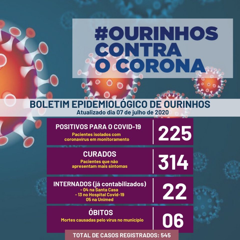No total, o município tem 545 testes positivos da doença, sendo seis óbitos e 314 pacientes que não apresentam mais sintomas e são considerados curados.