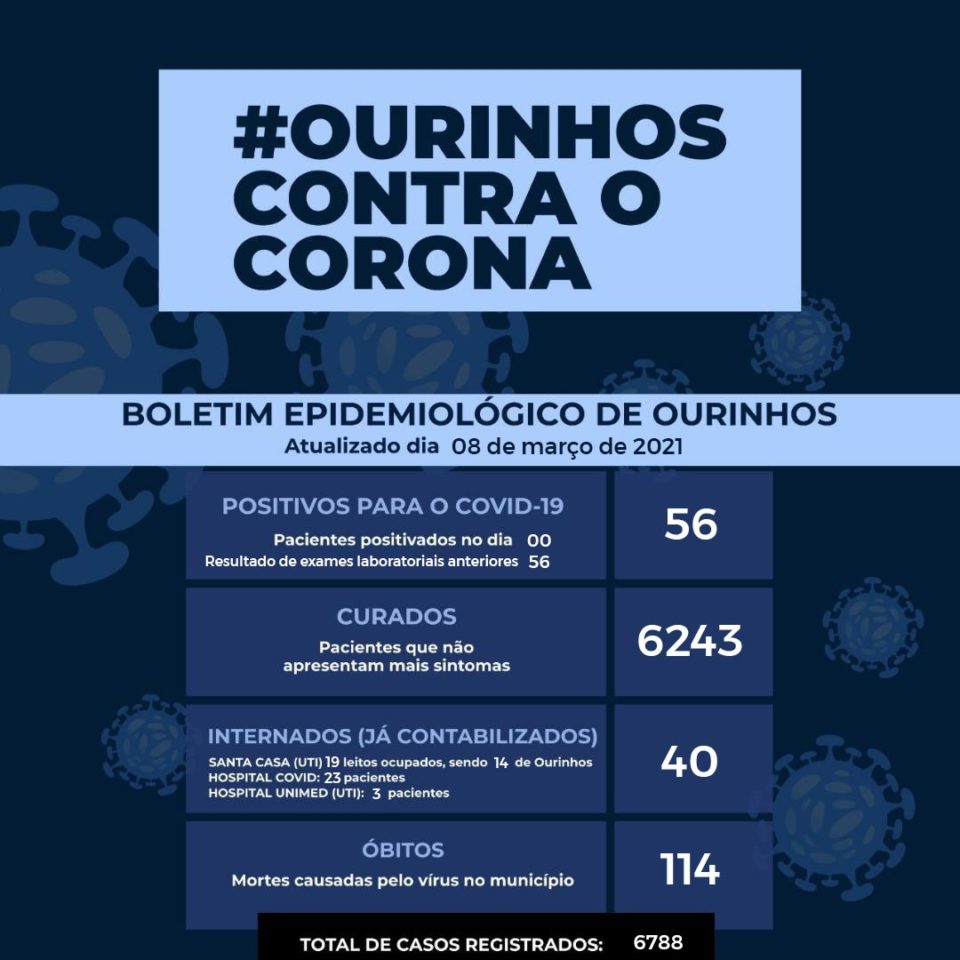 Ourinhos possui 6.788 casos confirmados, dos quais são 114 óbitos e 6.243 curados.