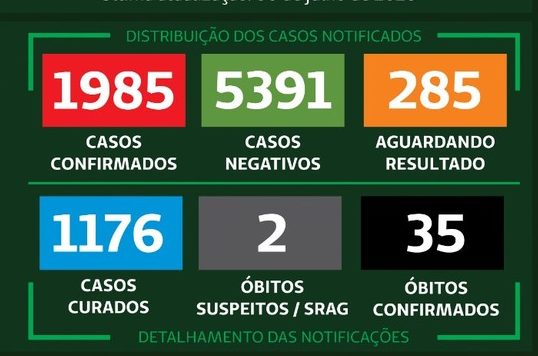 A cidade tem 35 casos positivos, sendo um óbito e 17 considerados curados. Outros quatro casos suspeitos aguardam resultados de exames.