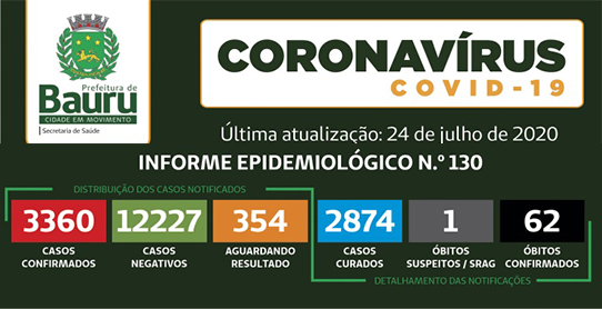 Até o momento, a cidade contabiliza 3.360 casos confirmados da doença, sendo 62 óbitos e 2.874 considerados curados. Uma morte continua em investigação.