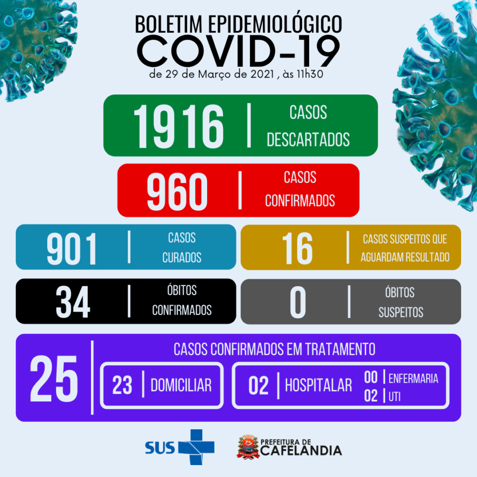 O município contabiliza 960 casos da doença, sendo 901 curados e 34 óbitos.
