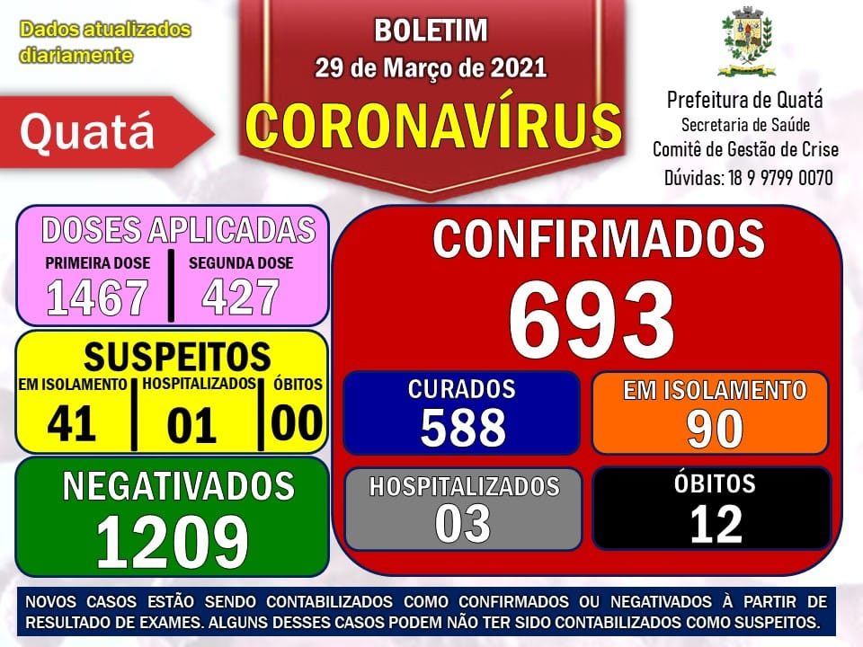 A Prefeitura de Quatá (distante 100 quilômetros de Marília) divulgou a 12º óbito por complicações do coronavírus. Não foram informados detalhes sobre a vítima.