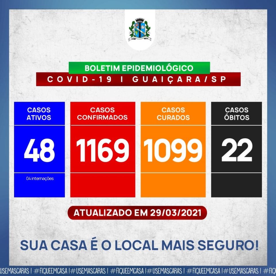 Guaiçara soma 1.169 casos, dos quais são 1.099 curados e 22 óbitos.