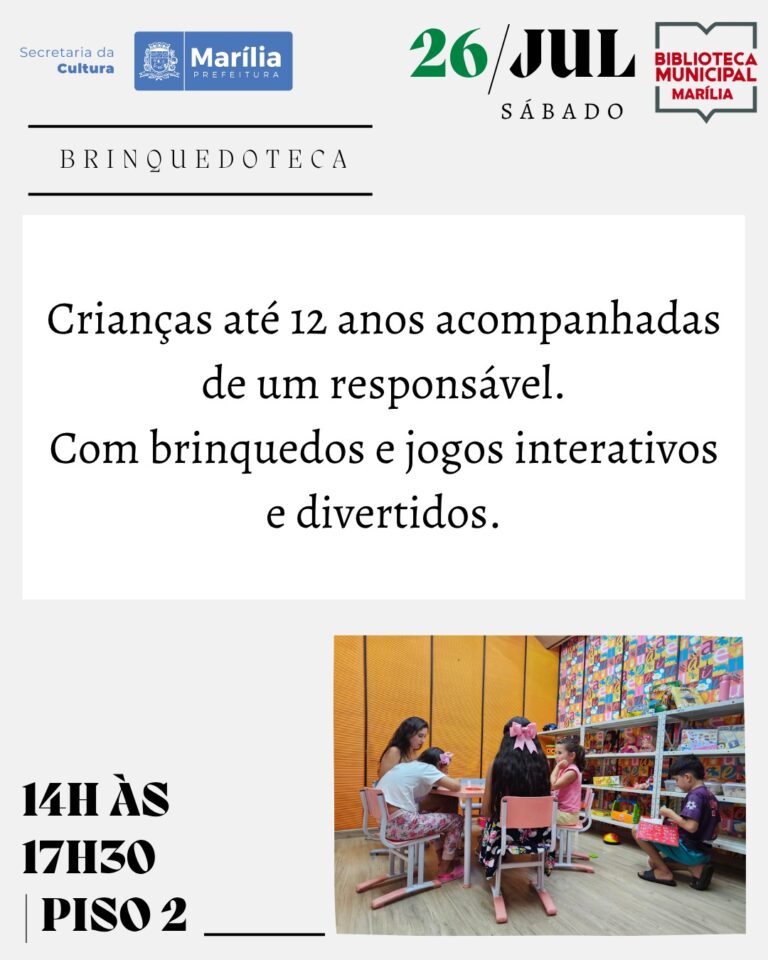Outras informações podem ser obtidas pelo telefone (14) 3454-7434 ou nas redes sociais da Biblioteca Municipal de Marília.