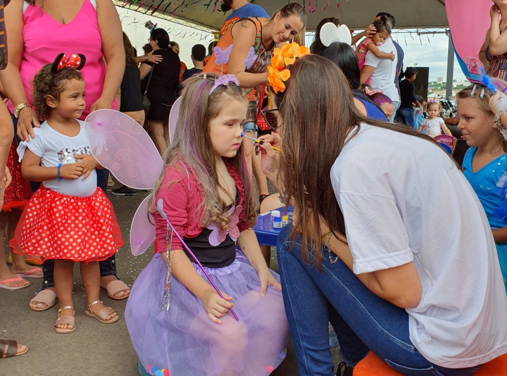 Além de muito confete e serpentina, a organização do Bloquinho Marília Kids também forneceu tinta para pintura facial, adereços carnavalescos, spray para pintar cabelo e muito mais. Tudo para aqueles que não levaram fantasia ou quiseram incrementar o visual.