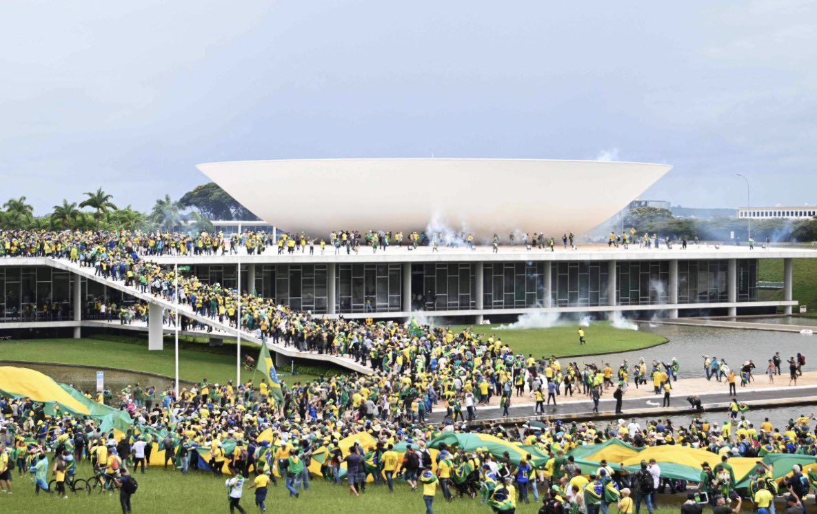 Manifestantes apoiadores do ex-presidente Jair Bolsonaro, inconformados com o resultado das eleições, invadiram o Congresso Nacional ocupando a rampa e soltando foguetes. Eles quebraram o vidro do Salão Negro do Congresso e danificaram o plenário da Casa após romperem a barreira formada por policiais militares. Na sequência, eles invadiram também o Palácio do Planalto e o Supremo Tribunal Federal.