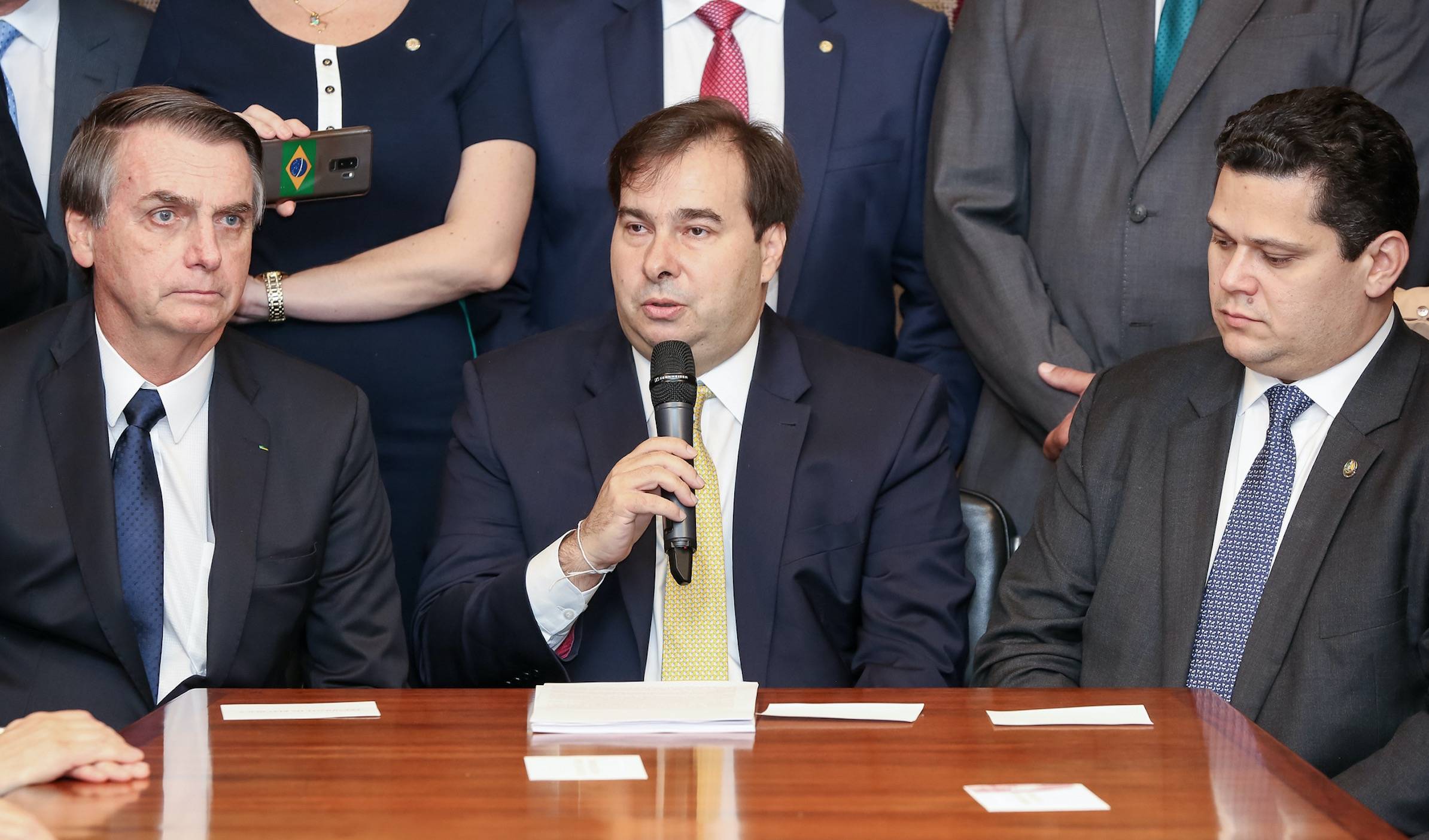 “Meus parabéns ao Rodrigo Maia. Parabéns ao Alcolumbre. Foram bastante solícitos nessa questão. Foi por um placar bastante elástico a aprovação”, disse Bolsonaro.