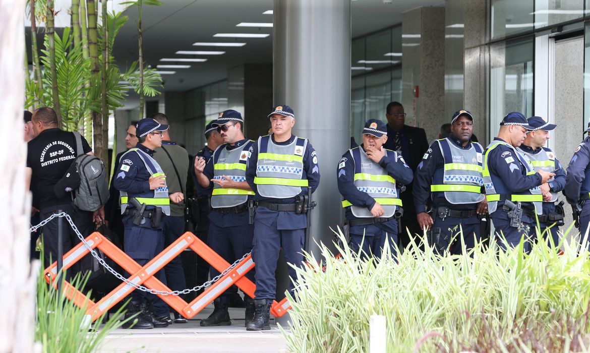 Brasília (DF) 05/04/2023 Policiamento reforçado na PF para o depoimento do ex-presidente Jair bolsonaro sobre as joias Sauditas.