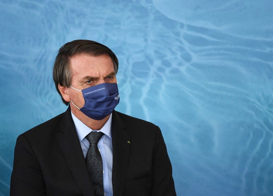 Brazilian President Jair Bolsonaro attends the launching of the Brazilian Waters Program in celebration of International Water Day at Planalto Palace in Brasilia, on March 22, 2021. (Photo by EVARISTO SA / AFP)