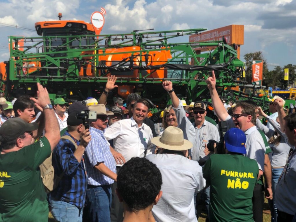 Na entrada da principal feira do agronegócio da América Latina, faixas de apoio ao parlamentar foram estendidas às margens da rodovia de acesso. Antes da cerimônia de abertura, Bolsonaro foi o único político recebido com aplausos e gritos de “mito”.