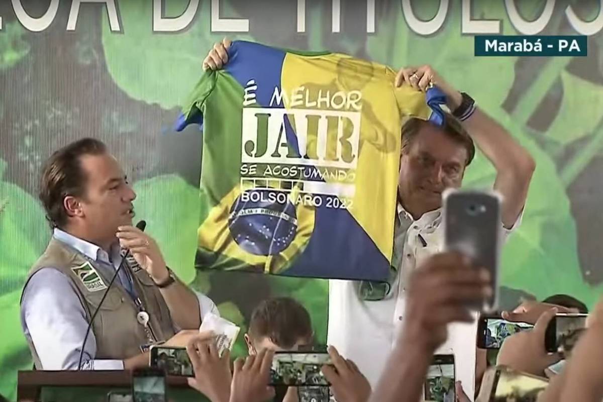O presidente Jair Bolsonaro voltou a recomendar nesta sexta, 18, o tratamento com cloroquina para pacientes com covid-19 durante visita ao Pará, onde participou de cerimônias em clima de campanha à reeleição. Em Marabá, ele levou para o palco o advogado-geral da União, André Mendonça, cotado para o Supremo Tribunal Federal, e exibiu uma camiseta com os dizeres “É melhor Jair se acostumando Bolsonaro 2022.”