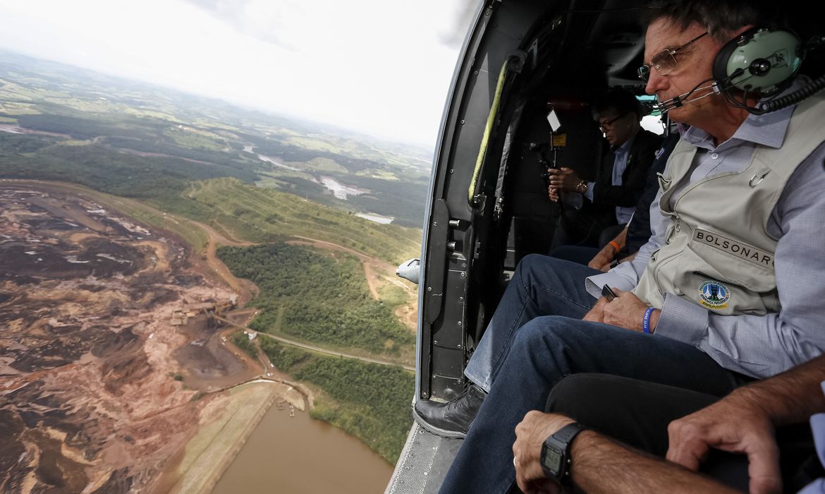 O Presidente da República, Jair Bolsonaro, durante sobrevoo da região atingida pelo rompimento da barragem Mina Córrego do Feijão, em Brumadinho/MG.