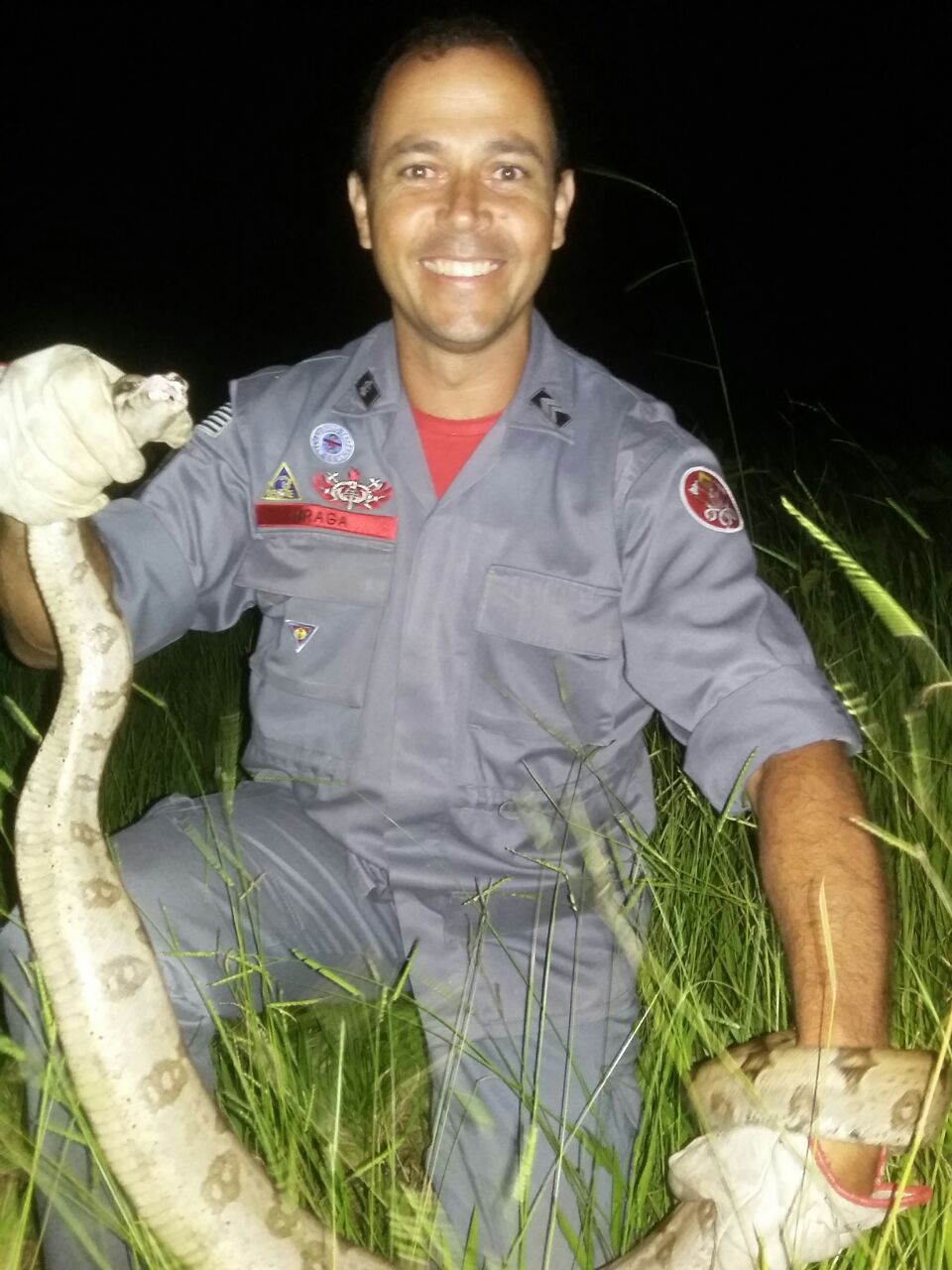 Mais tarde, às 22h, os Bombeiros foram acionados para capturarem uma jiboia de quase dois metros no condomínio Portal da Serra.