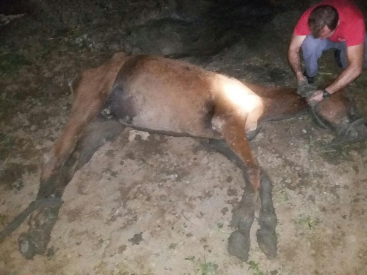 Cavalo após ser resgatado de poço com 10 metros de profundidade (Foto: Divulgação)