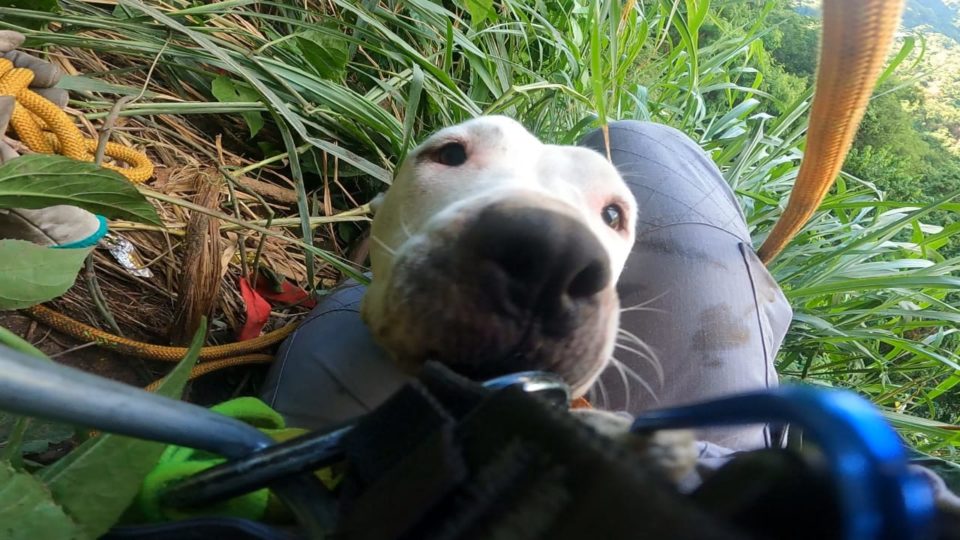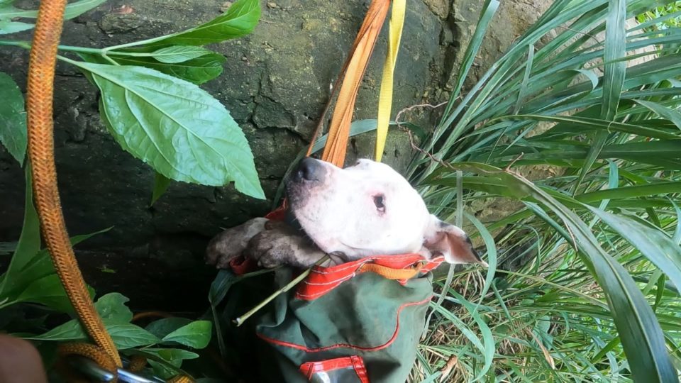 No último sábado, os bombeiros receberam novo chamado informando que próximo da rua Joaquim Ferreira Évora, uma das cadelas estava do outro lado do vale em uma encosta inacessível, dividida em dois patamares, o primeiro com 20 metros e o segundo com 40 metros.