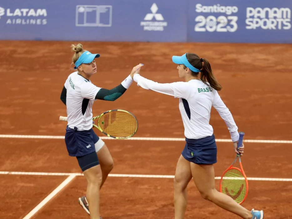 No tênis, o Brasil dominou os torneios de duplas, com dois ouros e uma prata. No feminino, Luísa Stefani e Laura Pigossi – bronze na Olimpíada de Tóquio, no Japão, em 2021 – derrotaram as colombianas Fernanda Herazo e Paulina Perez por 2 sets a 0, com parciais de 7/5 e 6/3. O país não tinha uma parceria campeã entre as mulheres no Pan desde a edição de 2003, em Santo Domingo, na República Dominicana, com Bruna Colósio e Joana Cortez.