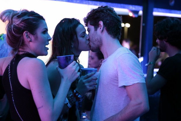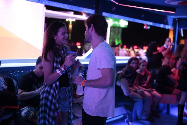 Os dois voltaram a se separar e Destri foi para o camarote se jogar na pista, protagonizando momentos de pura diversão ao dançar no espaço vip. Enquanto isso, Bruna se aventurou em brinquedo radical na Cidade do Rock. O reencontro aconteceu em um camarote. A atriz chegou animada, de peruca verde, com colegas de elenco de “I Love Paraisópolis”, e depois o clima de romance voltou, com os dois finalmente beijando na frente de todos.