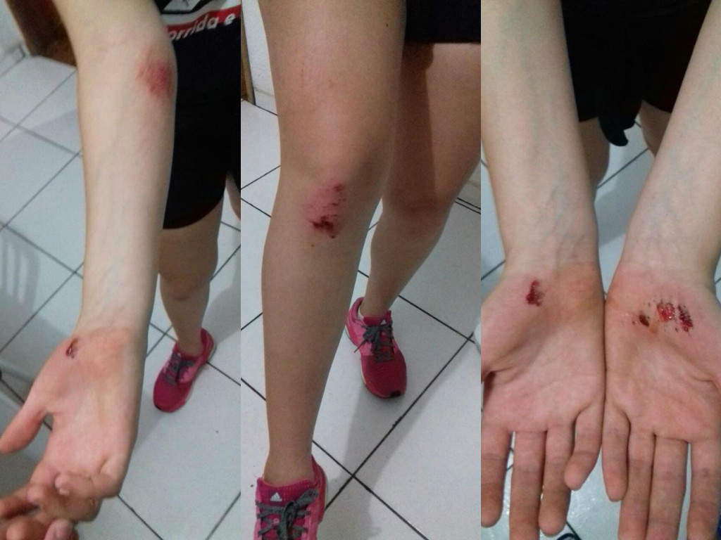 Fotos de escoriações que música sofreu na pista de cooper (Fotos: Arquivo Pessoal)